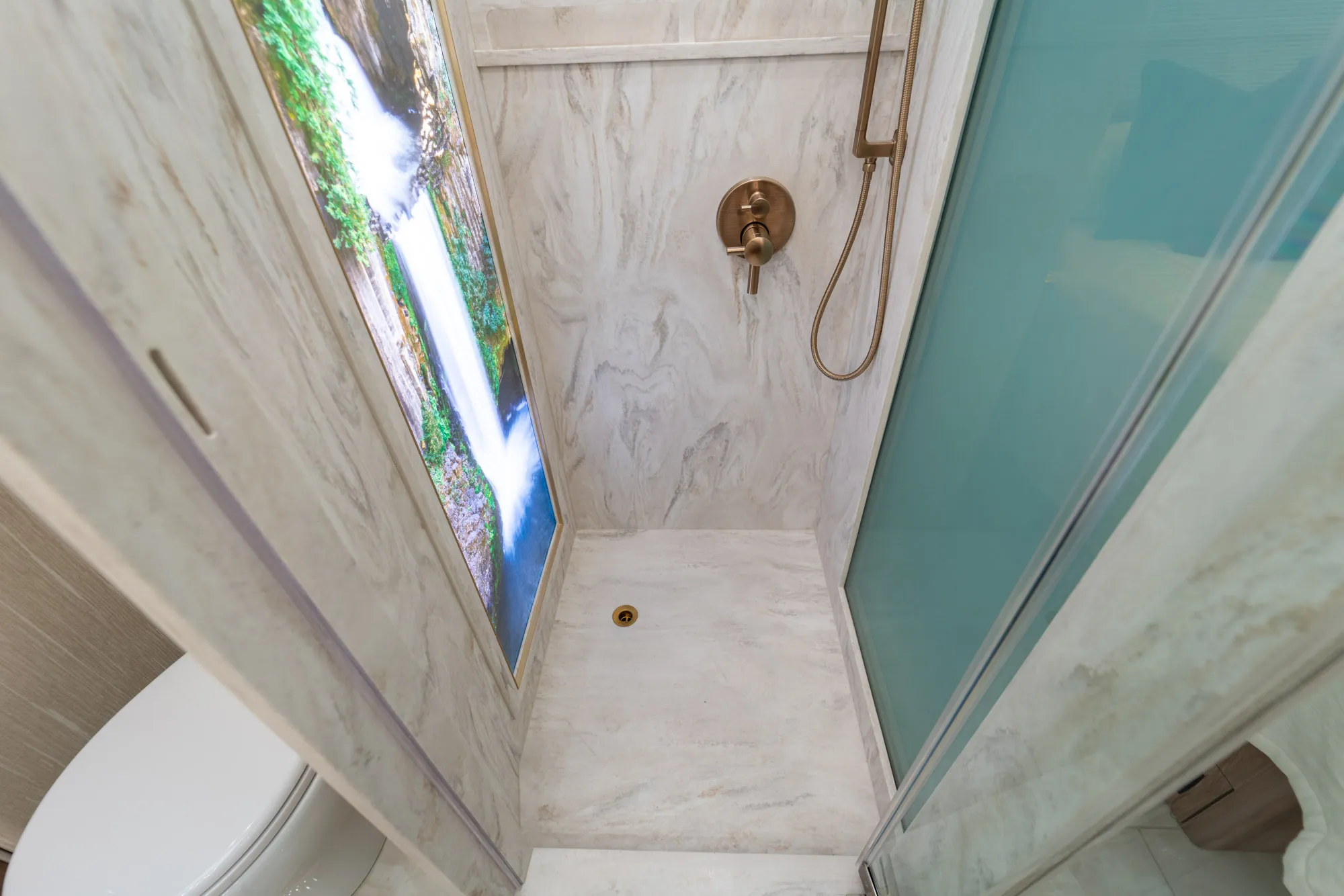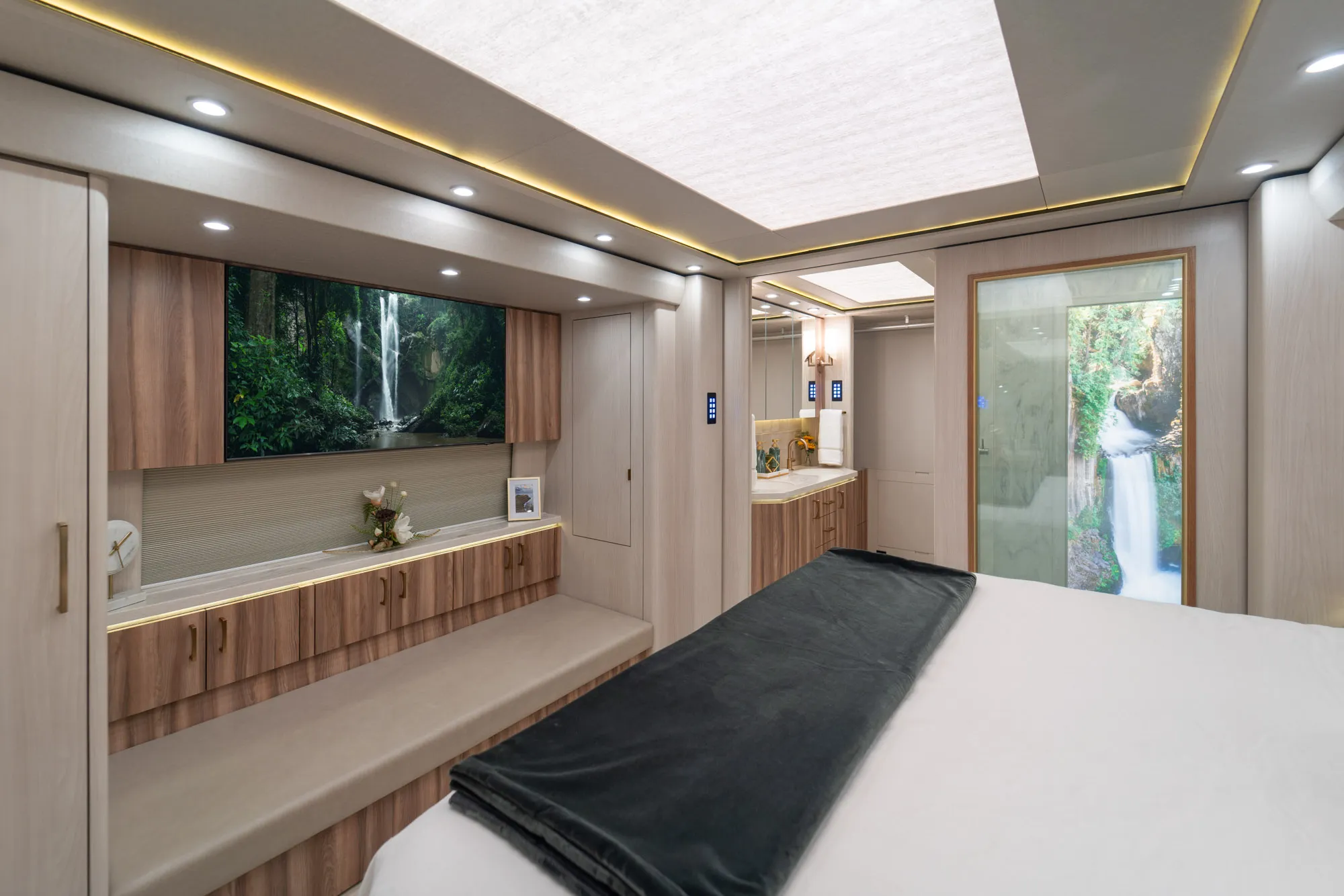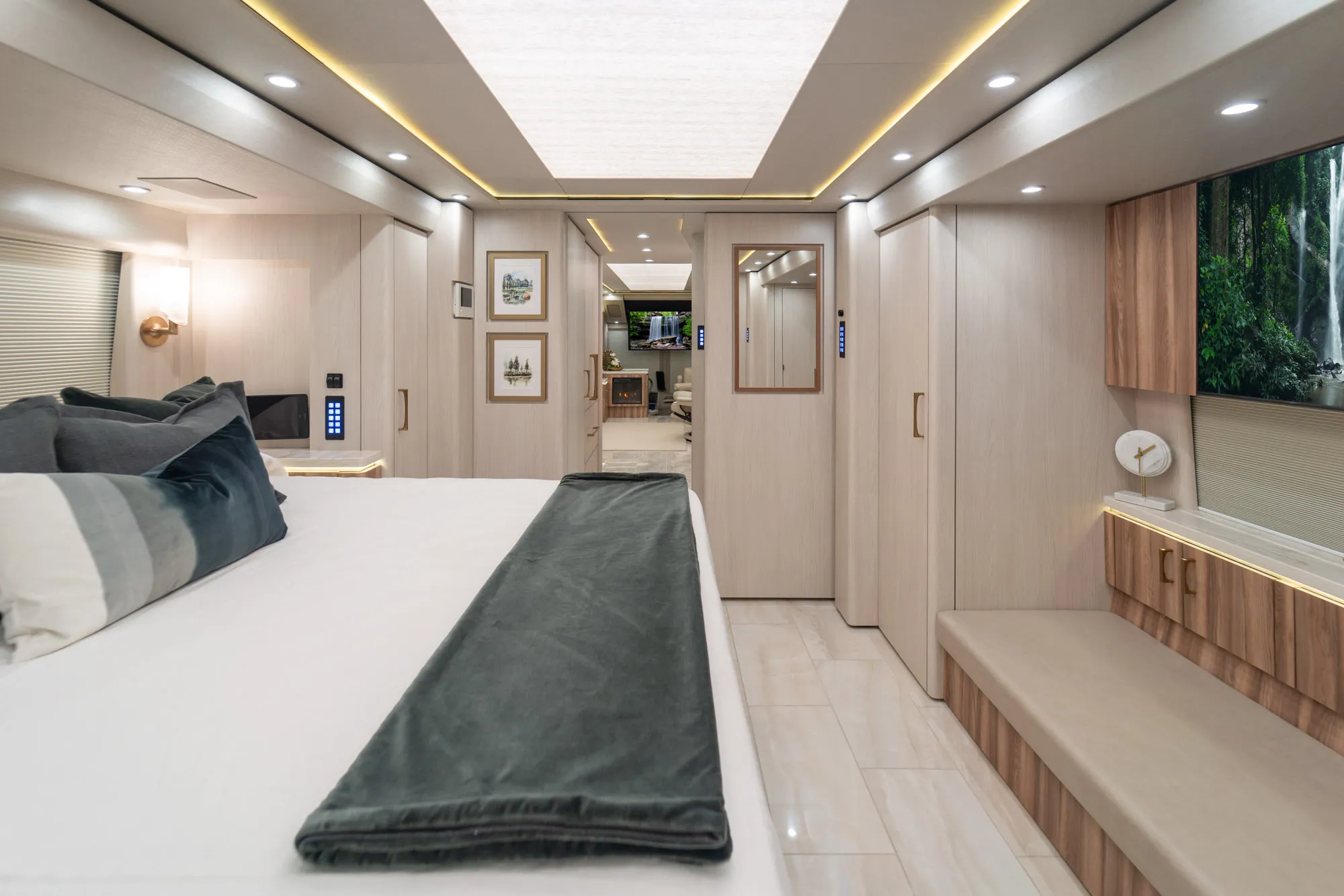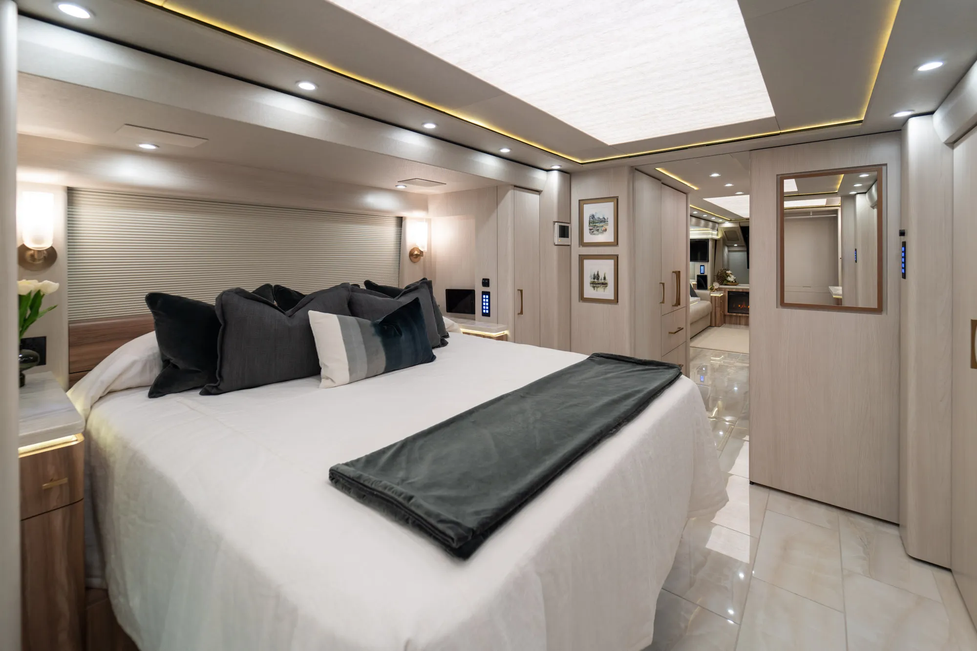 FEATURES SNAPSHOT\n● Crestron Audio with Surround Sound\n● Girard Automatic Awning Package with Fairings\n● 20 KW Kohler Generator with Auto-Gen\n● Patented Freedom Plus Sewer System\n● Patented TechLink Electrical System